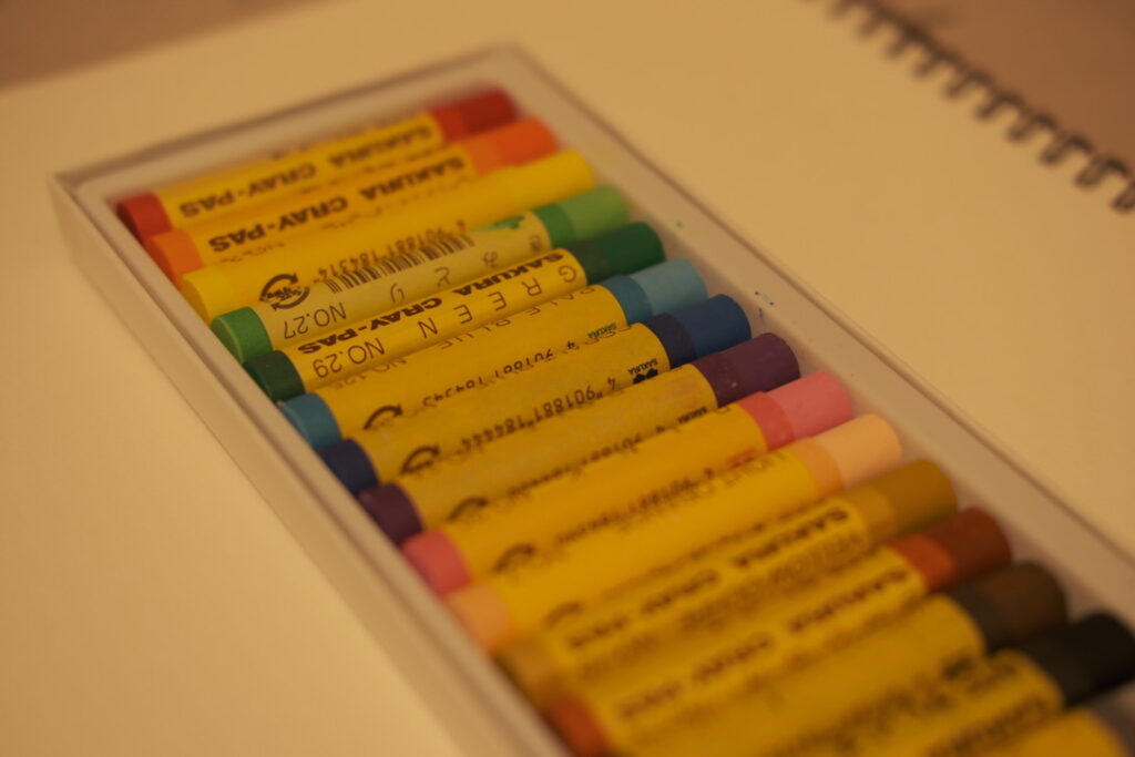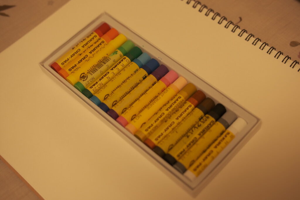 無印良品のスケッチブック、サクラクレパス、綿棒。