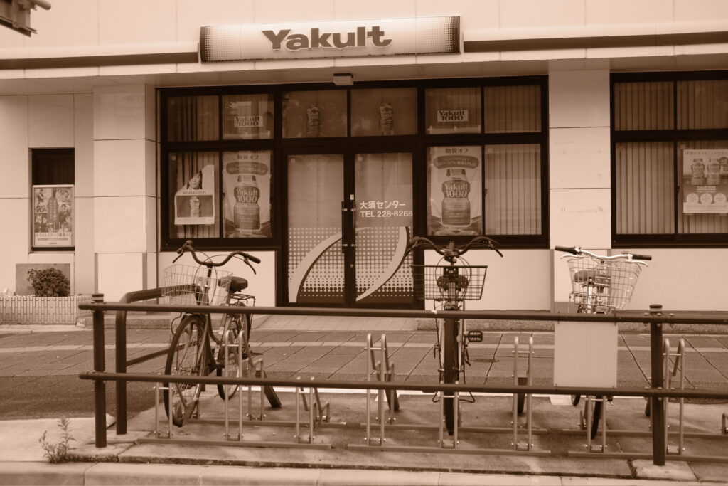 ヤクルトと自転車、素敵ですね〜。停車中に撮影。
