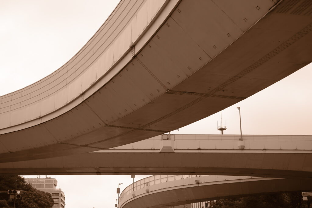 上は高速道路です。下から見ると、かっこいいですね!