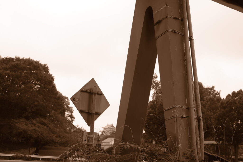 FUJIFILM X-T50 セピアで撮った、車窓からの名古屋の景色