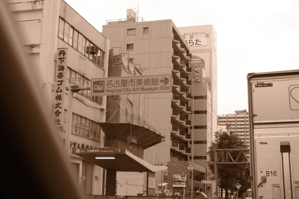 名古屋市美術館は右折して200m→の看板。
