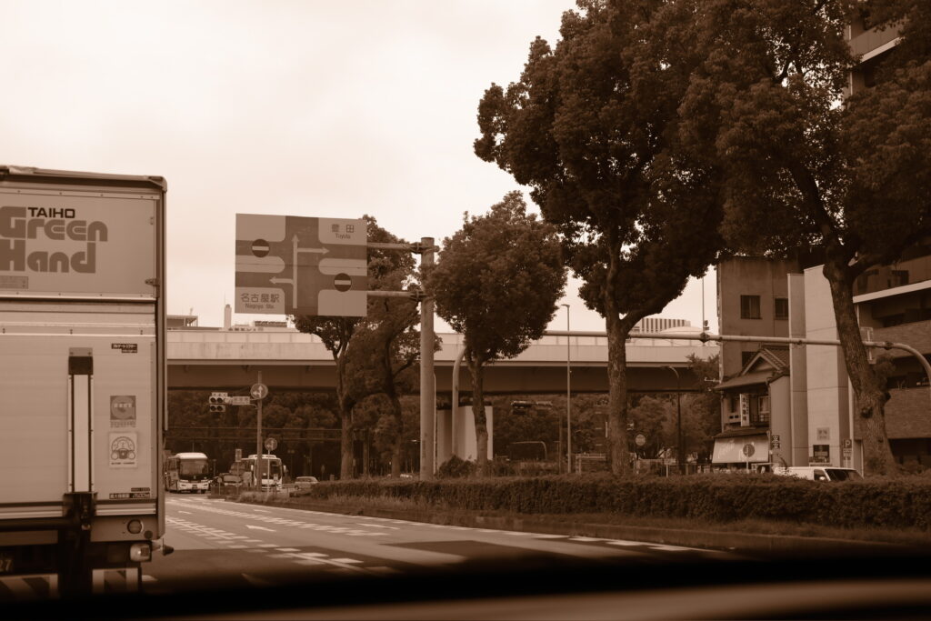 運転手は夫。私は助手席です。今回は、助手席から撮った名古屋の景色をお届けしたいと思います。