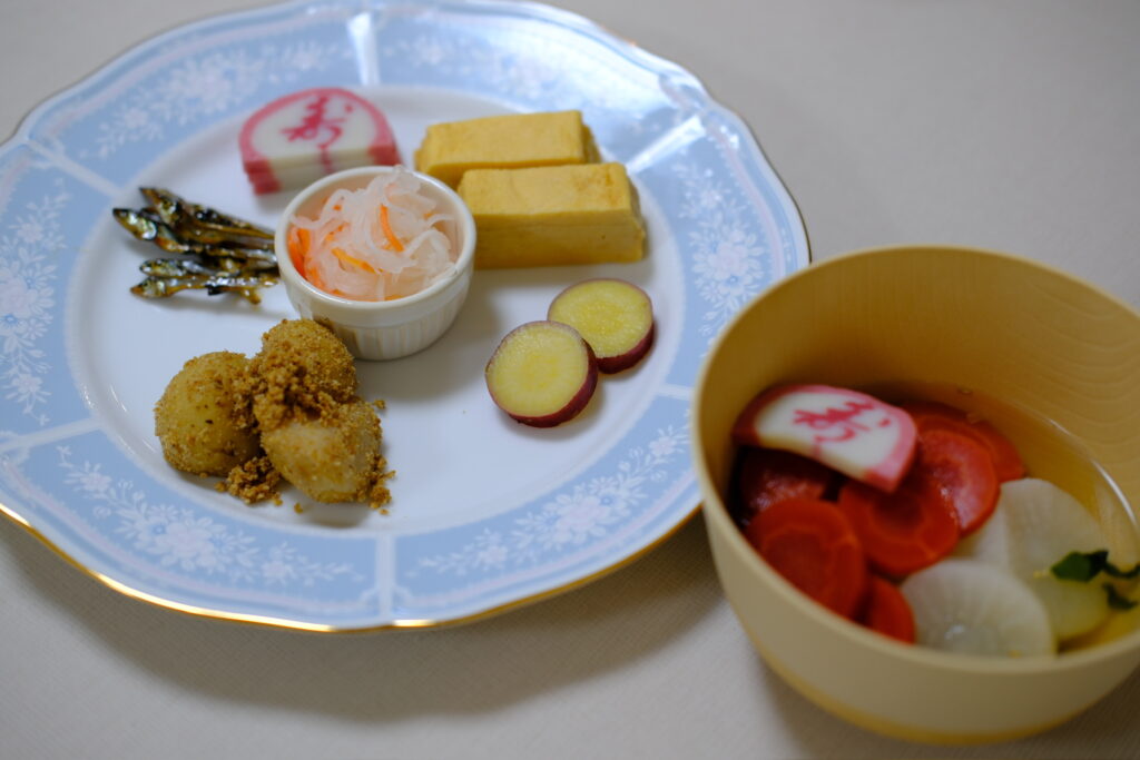 購入したおせちの料理と家の残り物で、ワンプレートおせちに。