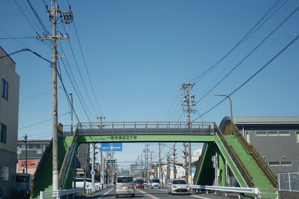 一宮市に、この緑色の歩道橋がいくつあるかを知っていますか?私は去年から数え始めましたよ。意外と歩道橋が多くて、一宮も広くて、今いくつ数えたのか分からなくなってきています。