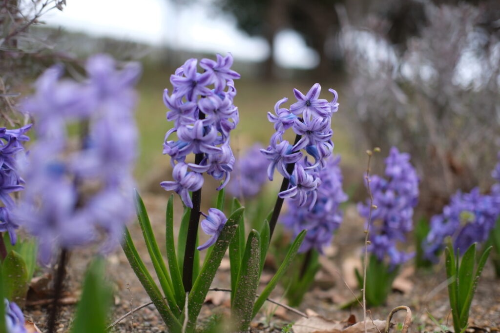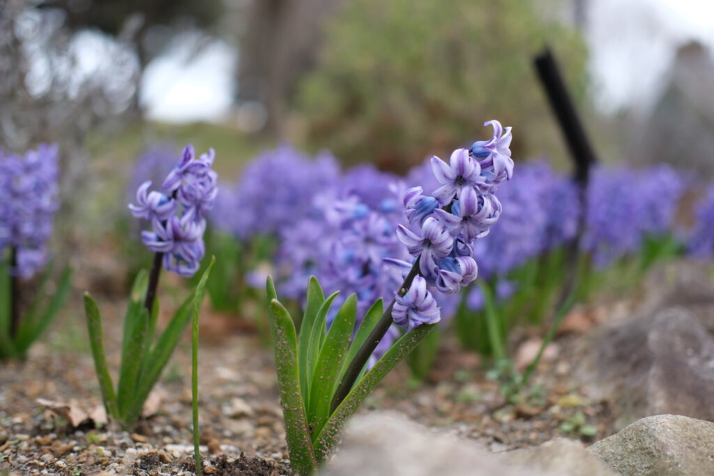 次はヒヤシンスを発見。発見と言うか、風に乗ってヒヤシンスの香水のようなエレガントな香りが流れてきて存在に気づいたんです。地植えのヒヤシンス。