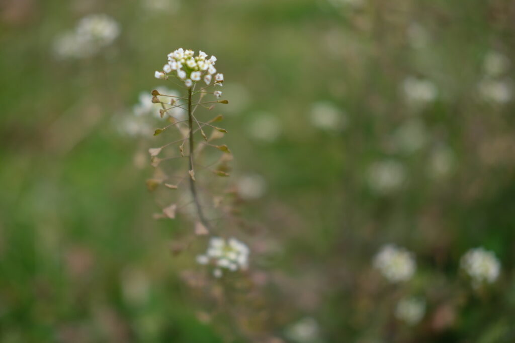 芝生エリアで見つけたぺんぺん草。私のカメラで映るのかな…と撮ってみると、写りました!この年齢になって小さなぺんぺん草を見ると、かなり小さく思えます。