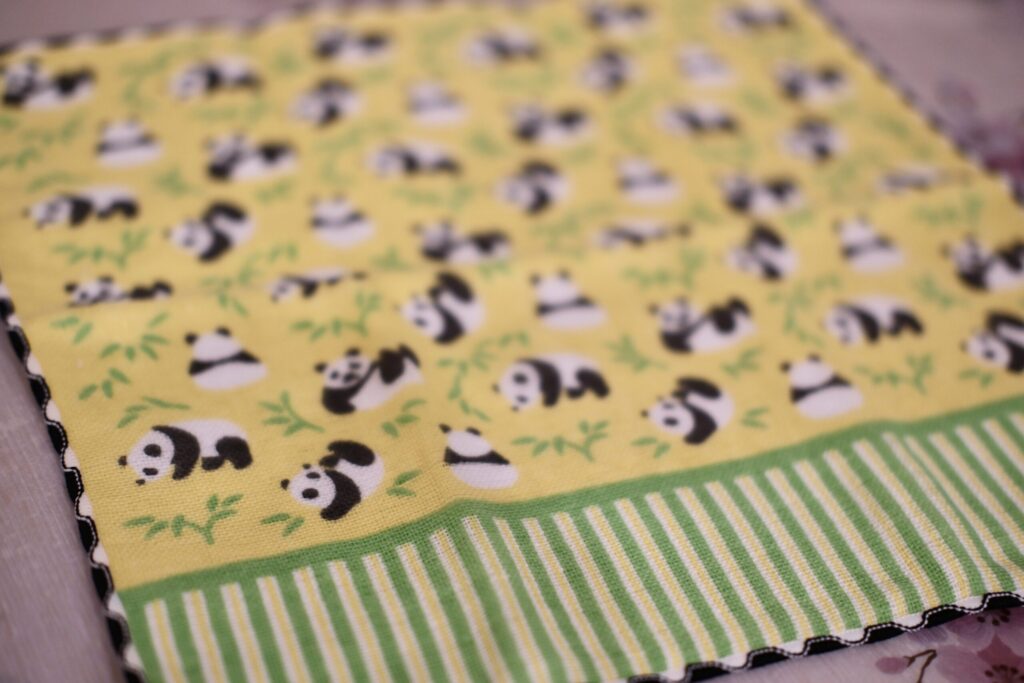 「なんかこのパンダ、僕に似てるね〜」と自己申告する夫に納得。夫は常にドーベルマンっぽいのですが、このハンカチのパンダみたいに表情が豊かなんです。