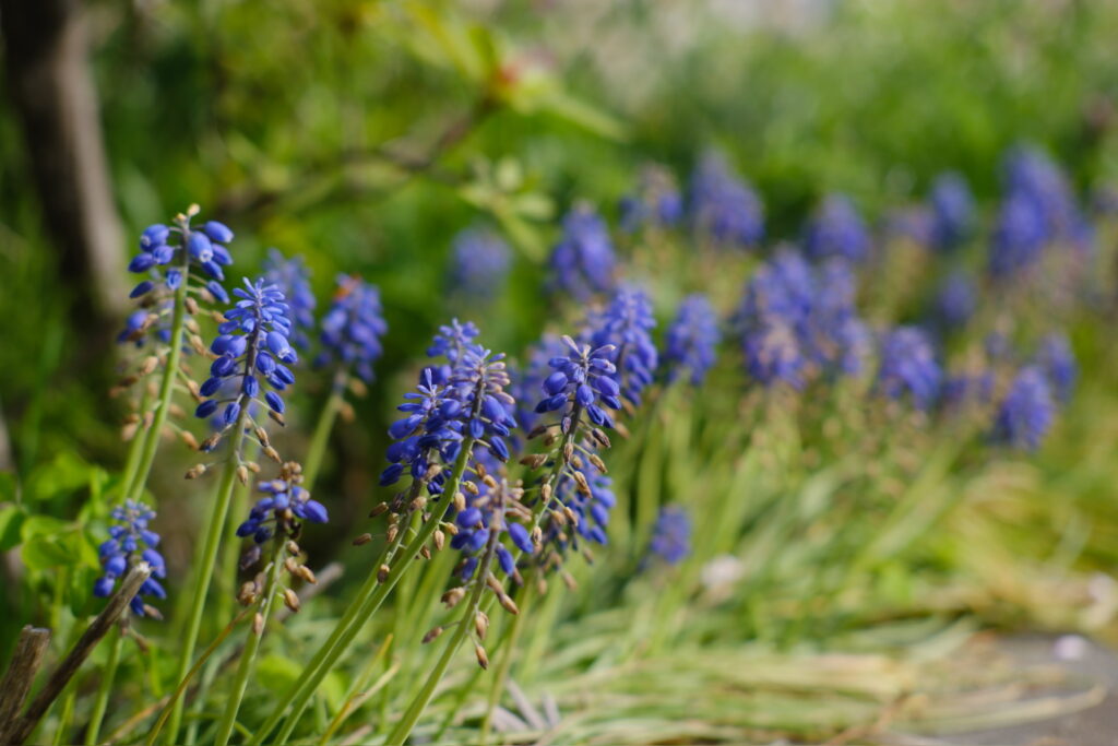 そして、宝生山 辯天寺を訪れたとき、足元には可愛らしいムスカリが…!