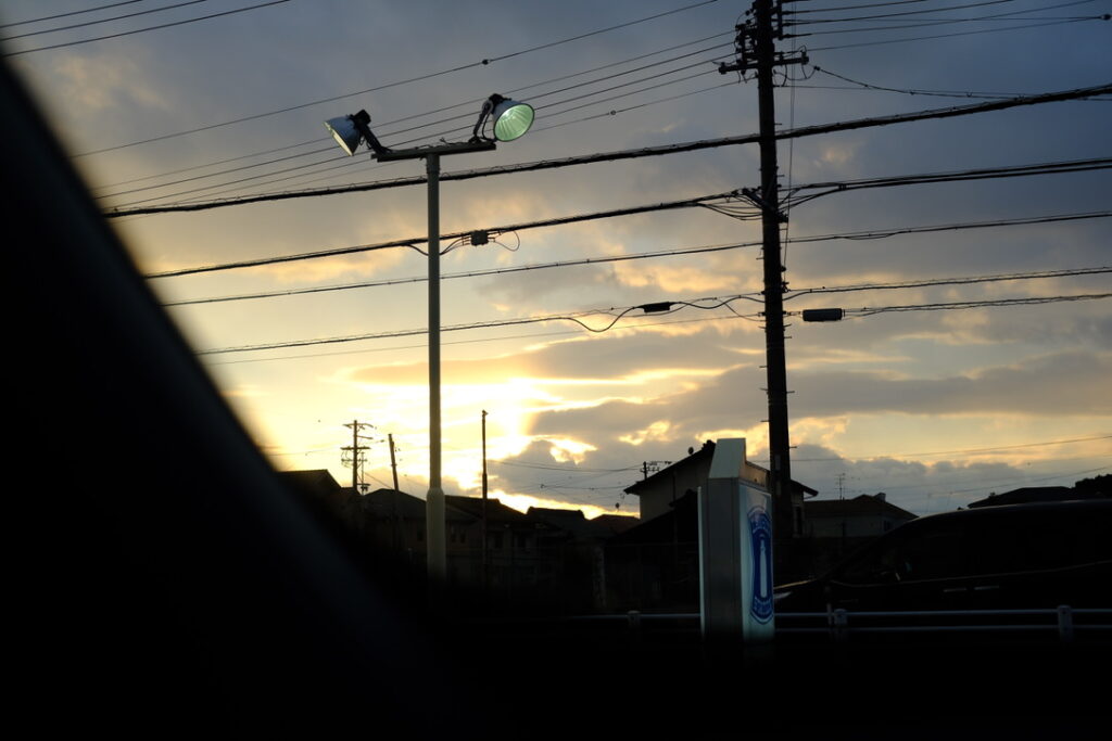 出かけていると夕焼けが凄く綺麗で、車の助手席から写真を撮り始めました。